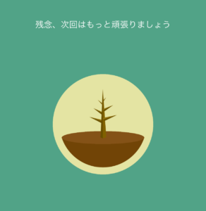 しかしスマホを使ってしまうと、(正確に言えばアプリを閉じて他のことをしてしまうと)下の画像のように木が枯れてしまいます。