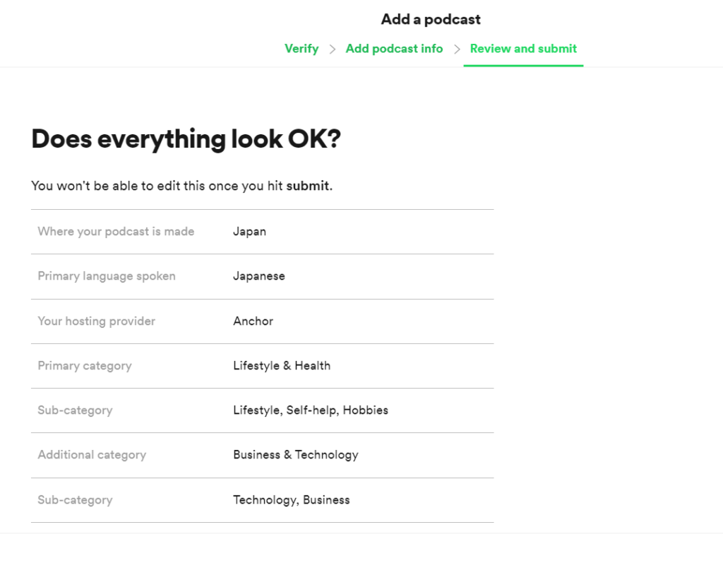 ちなみにメインカテゴリーだけでは、自分のポッドキャストをカテゴライズできない場合は、アディショナルカテゴリーを追加することも可能です。