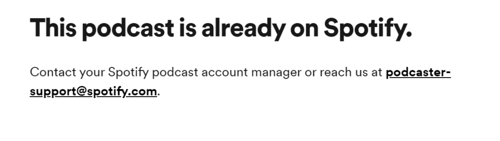 I want to use Spotify for Podcasters but my request is rejected because “This podcast is already on Spotify”