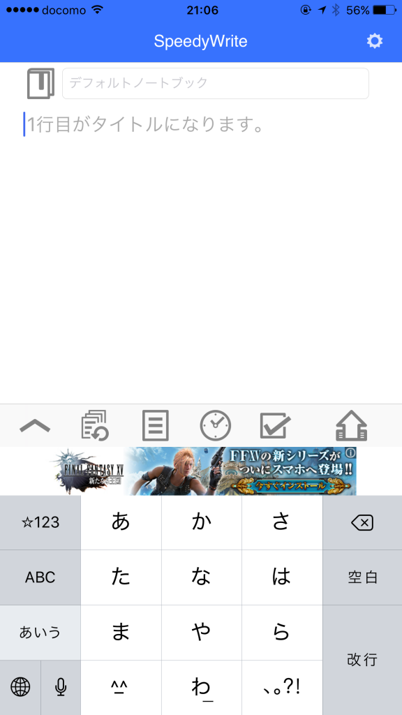 今までにSpeedyWriteを使って送ったノートブックとタイトルが表示されます。同じノートに追記したいときにはこちらからやると便利です。