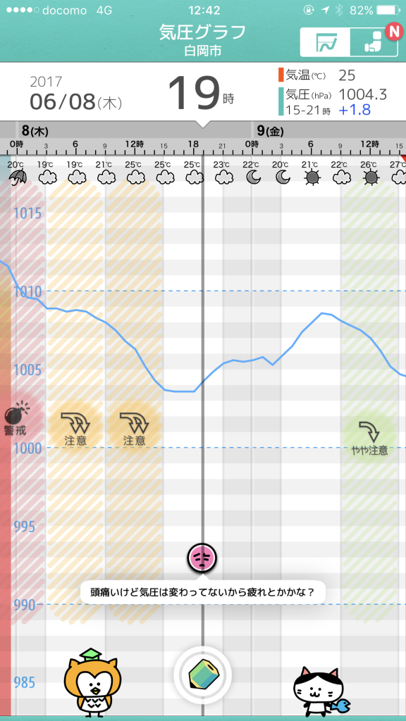 自分の傾向が分かってきたので、気圧も下がっていないときに頭痛がした場合は体調不良と判断するようになりました。気圧による頭痛の場合は、様子を見ながら「ちょっとぐらいなら無理しても大丈夫かな」といった判断しています(たぶん無理はしないほうがいいです)。